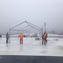 We offer commercial tents for our a wide range of industries from construction sites to port operations. The difference between our regular event frame and commercial frame is that the commercial tents are a heavier duty structures that can withstand longer durations on work sites that require a canopy to protect against the elements. These tents are often tarnished and not “wedding grade” as they are specifically used for dirty work sites.