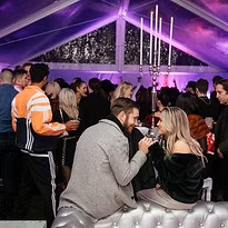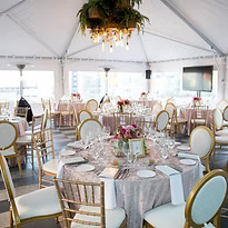 The frame tent provides an unobstructed clear-span interior that can be customized to your specifications. Our aluminum rafters are specially designed using a keder sliding tubing that offers a truly expandable tenting system. The canopy slides through the track ensuring that the top is watertight. Seamless tensioning panels covering the top of the structure offer a completed finish to any event. Whether it’s a corporate event, gala, tradeshow or a large wedding, the frame tent system is the perfect fit.